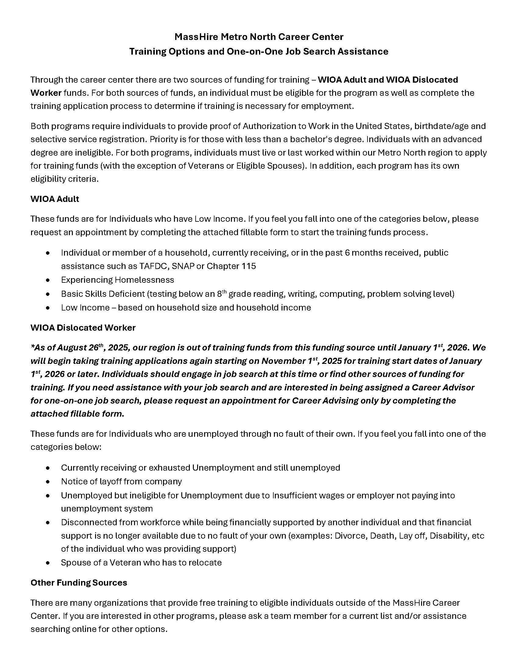 MassHire Metro North Career Center Training Options 2025aug26